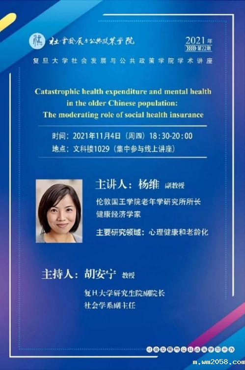 11月4日,伦敦国王学院老年学研究所所长、健康经济学家杨维受邀面向社政学院师生举行在线学术讲座,讲座题为:“Catastrophic health expenditure and mental health in the older Chinesepopulation: The moderating role of social health insurance”。杨维博士结合实证深入探究了中国老年人口的重疾医疗费用与心理健康状况之间的关系,并探讨社会医疗保险在其中的调节作用,描绘出了社会医疗保险对老年人精神健康的影响路径。讲座中,杨博士还结合与师生们的讨论,展望了未来对于其他政策和其他国家的研究方向,给大家带来了很大的启发,为此次系列讲座划下了圆满的句号。