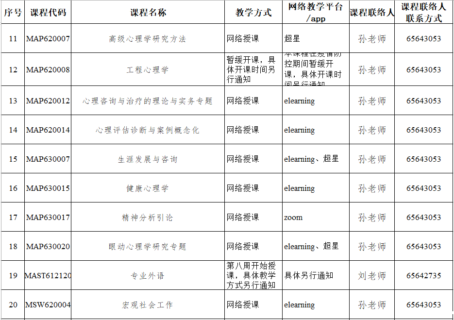备注:网络教学期间以上课程如有信息变化会及时更新,请以最新发布为准。