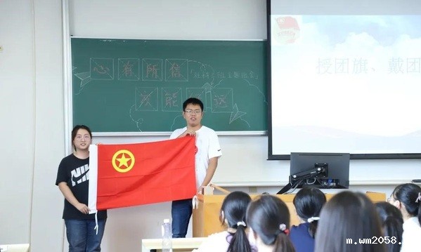 接过鲜艳的团旗,社科3班团支部正式成立!共青团的团旗,于1950年5月4日由团中央委员会公布的。团旗旗面为红色,象征革命胜利;左上角缀黄色五角星,周围环绕黄色圆圈,象征中国青年一代紧密团结在中国共产党周围。