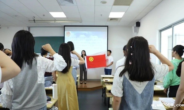 活动第一项,全体同学起立!齐唱中国共产主义青年团团歌《光荣啊,中国共青团》!